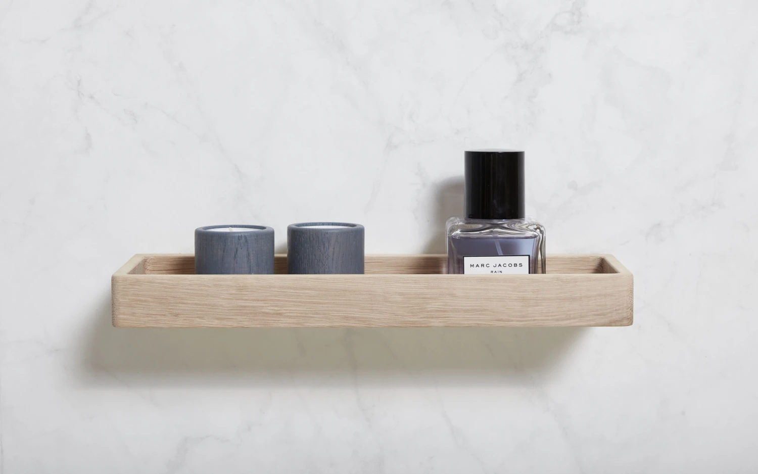 Stilren hylde i et let og enkelt design. Hylden, som fås i to størrelser, har mange anvendelsesmuligheder. Den kan bruges i køkkenet til krydderier, i badeværelset til bl.a. parfume eller i stue og andre rum, hvor den er perfekt til mindre pyntegenstande.