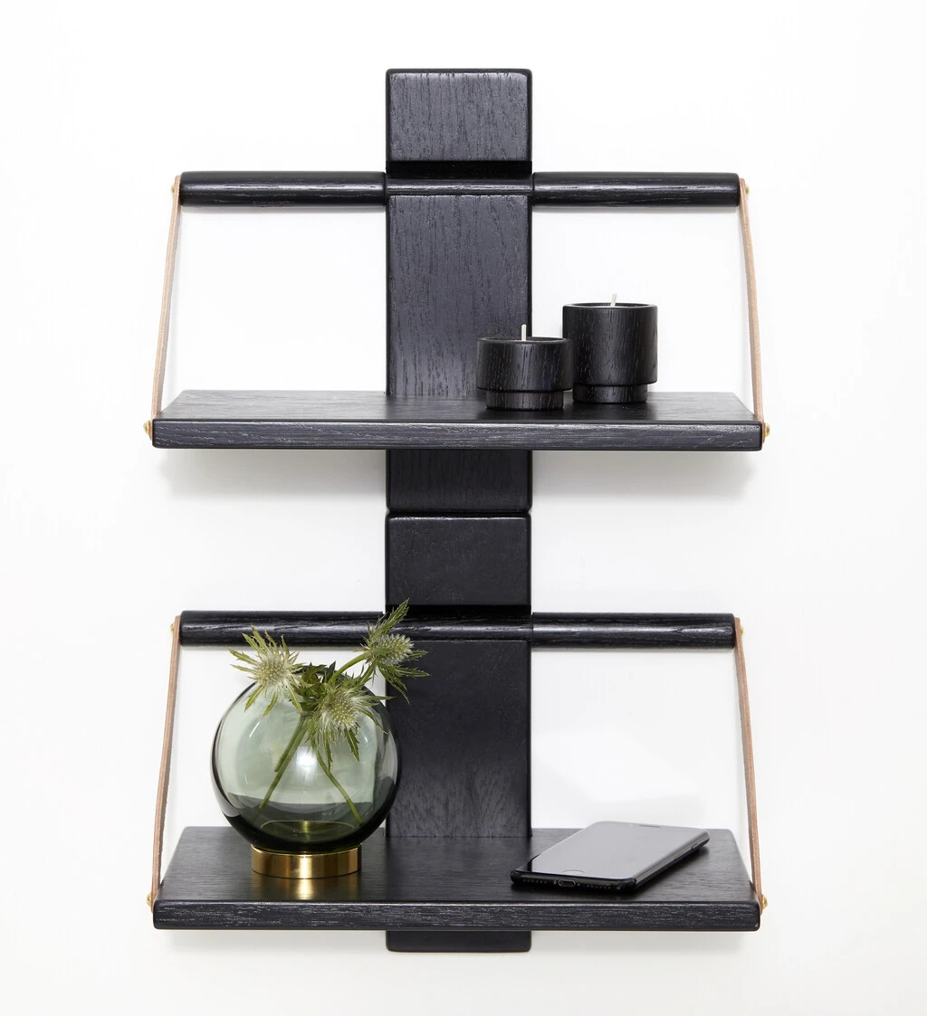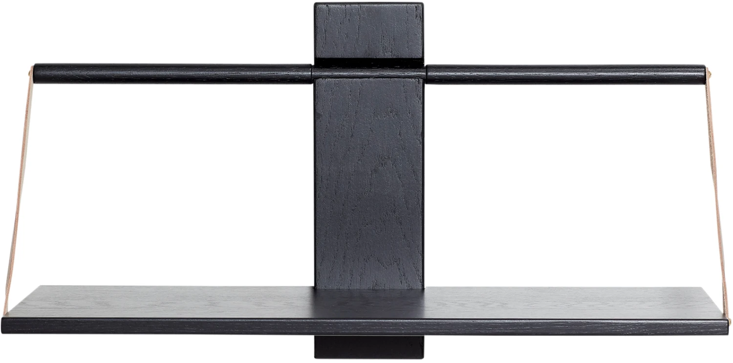 Wood Wall er nem at montere på væggen og der er mulighed for at ”bygge” flere hylder oven på hinanden, således at hylden fremstår som en reol. Den er fremstillet af massivt ege træ og stropperne er ægte kernelæder.