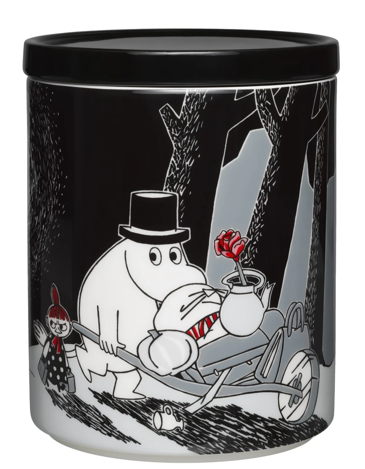 Kukke med motivet “Mumi flytter”. Mumitrolden og Snorkfrøkenen beslutter at gå ud og finde ud af, hvorfor alle forlader Mumidalen. Snart finder de ud af, at årsagen til den pludselige flugt er en komet, der forventes at ramme jorden når som helst. Selv Mumifamilien flygter mod en hule, hvor de kan være i sikkerhed. Til sidst er den alarmerende komet drevet væk af naturens kræfter, og kometen rammer ikke Mumidalen.