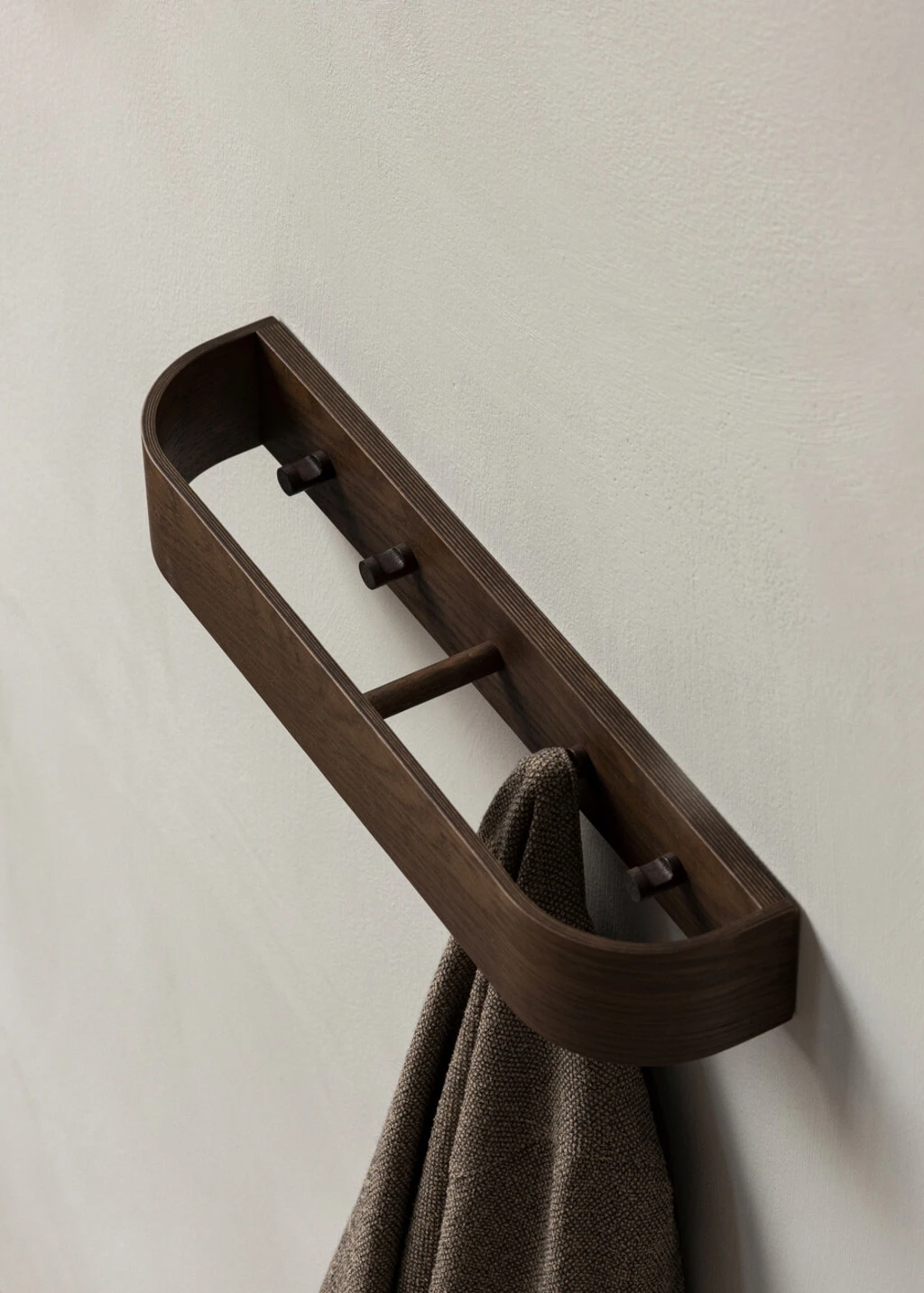 Med sin omhyggelige kombination af blidt afrundede kanter, varmt træ og diskret funktionalitet tilbyder Epoch tøjstativ fra det tidligere MENU strømlinet opbevaring til store og små rum. Designet til MENU af Nina Bruun, det vægmonterede stativ har skjulte tøjkroge, og det pladsbesparende design kan ophænges alene eller i rækker af flere.