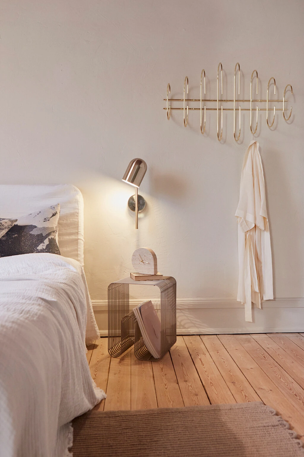 MOVEO betyder bevægelse, og det er i sandhed det, som denne genstand er – en tilføjelse af bevægelse til et ellers stille rum. MOVEO’s udtryk handler om dynamik og bevægelse, hvilket giver produktet et langt større formål end dets praktiske anvendelse som garderobestang. MOVEO-garderoben, der fremstår som små bølger, der ruller og bevæger sig langs væggen, tilføjer en munter og samtidig sofistikeret personlighed til rummet.