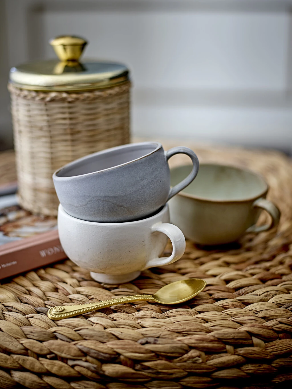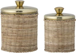 Abas Krukker m/Låg fra Bloomingville er et sæt med 2 rattan flettede krukker med guldlåg. De er perfekte til opbevaring af din kaffe. Perfekt, hvis du leder efter noget, der ikke kun er praktisk, men også flot!