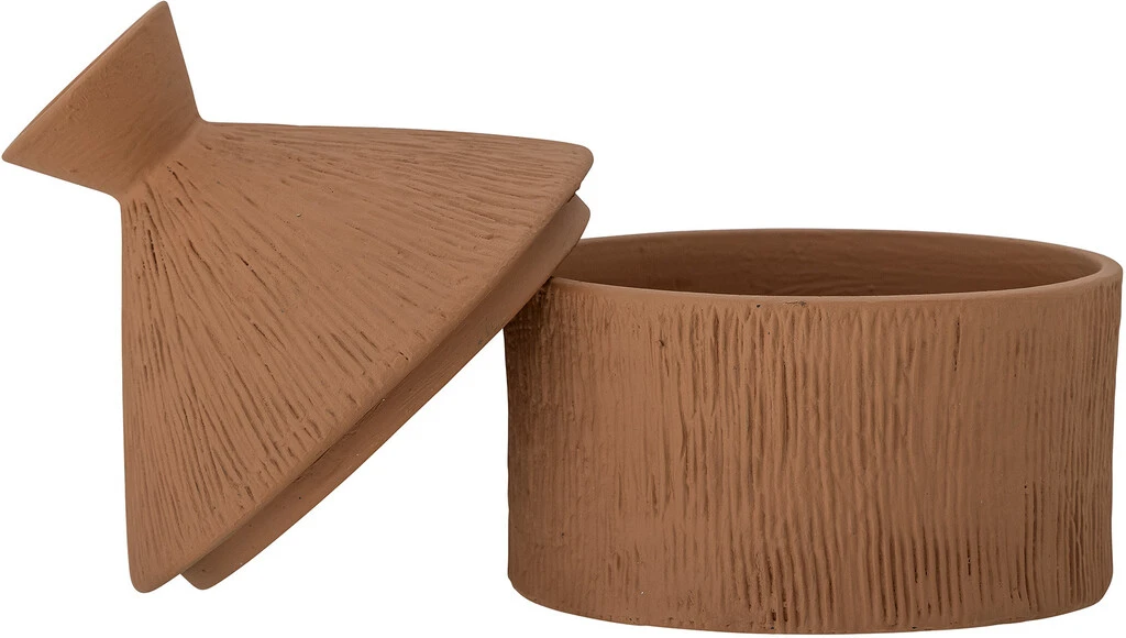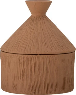 Caylie Jar fra Bloomingville er en lille krukke med låg lavet af terrakotta. Den har et antikt look og en fin form, der er perfekt til dekoration eller opbevaring af dine småting.