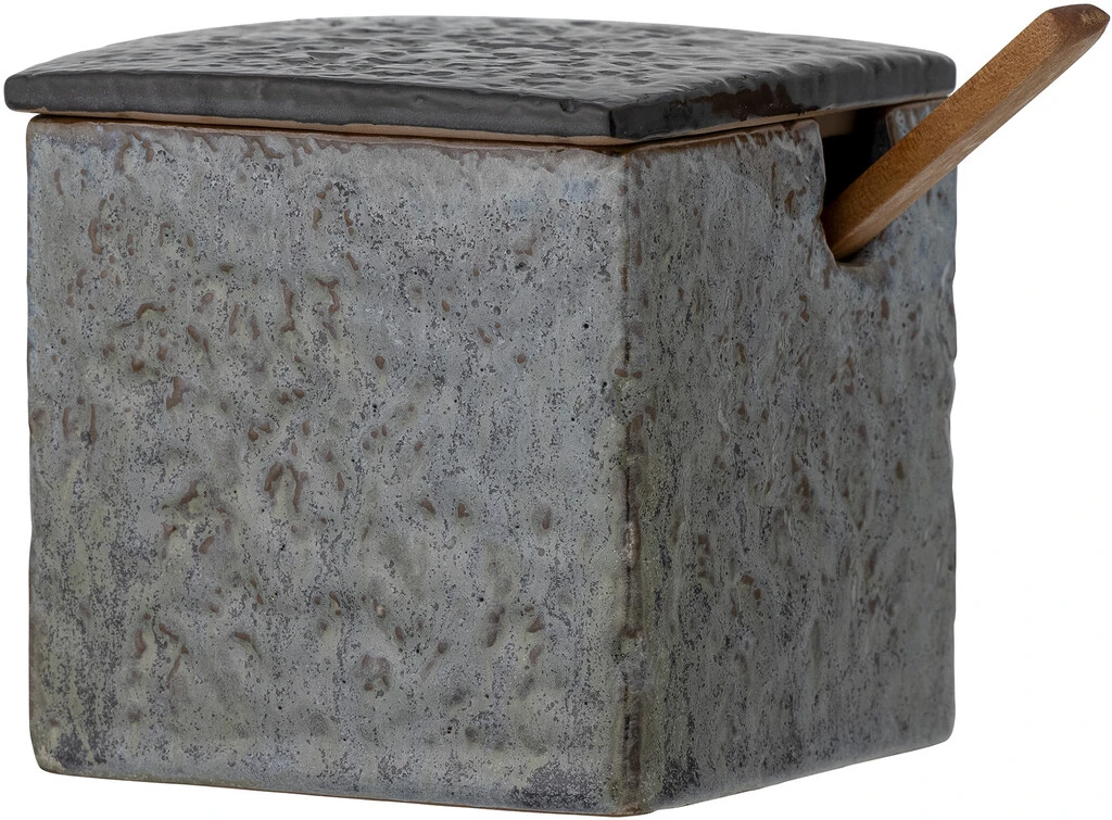 Hariet Krukken m/Låg & Ske fra Bloomingville er perfekt til opbevaring af sukker, salt og andre krydderier på charmerende vis. Lavet af stentøj i en smuk blå farve med en lille ske af fyrretræ, er Maya-krukken perfekt til enhver borddækning med sit klassiske nordiske look.