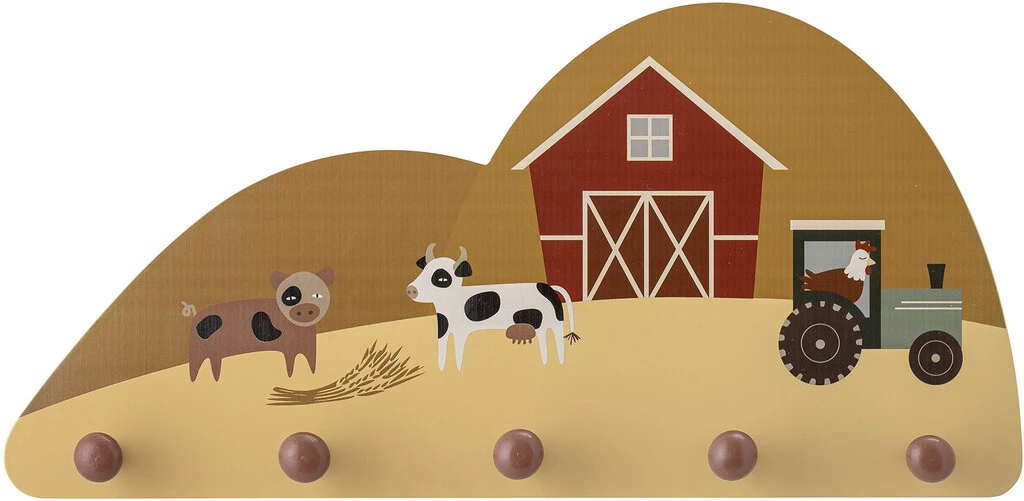 Billy Knagerække fra Bloomingville Mini har et sødt bondetema og er lavet i flotte naturlige farver, der passer perfekt til ethvert børneværelse. Den kan bruges som pynt, til at hænge børnetøj eller til børnenes jakker i gangen. Knagerækken har fire kroge og er lavet af lotustræ.
