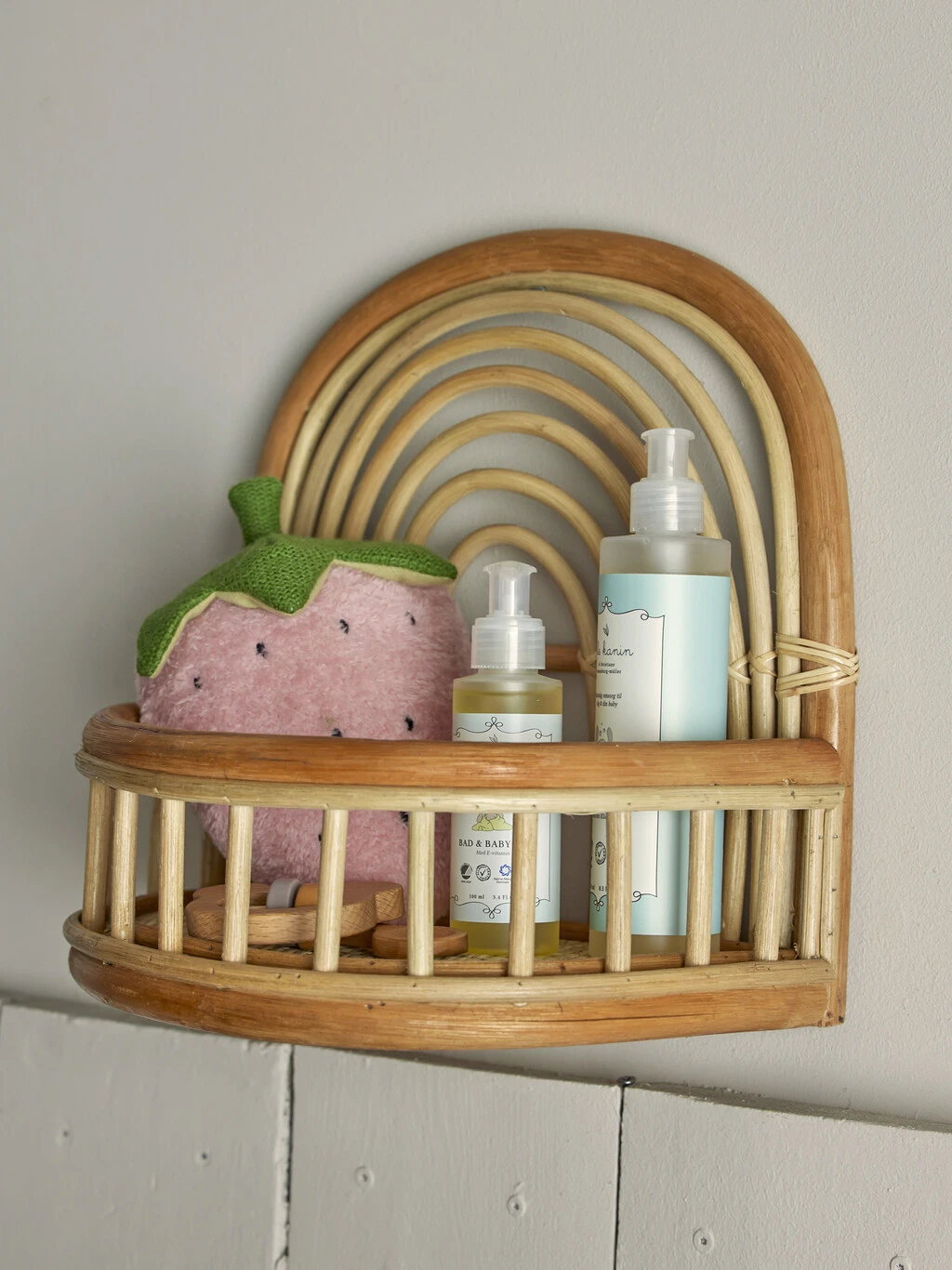 Den smukke Preet-hylde i rattan sætter et naturligt præg på børneværelset. Brug den til små bøger eller yndlingssmåting.