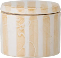 Cathe Krukke med låg fra Creative Collection er en fantastisk opbevaringsløsning til ethvert rum i huset. Denne krukke leveres med et låg for at holde maden fri for insekter. Krukken er lavet af stentøj og malet i gule og hvide striber. Krukken er en perfekt tilføjelse til dit køkken, hvis du leder efter noget, der ikke kun er funktionelt, men også flot.