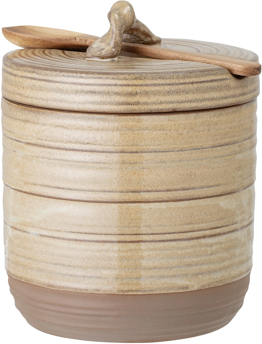 Moss krukke m. låg & ske fra Creative Collection er en smuk og hyggelig krukke at opbevare mad i. Krukken er lavet af stentøj i fantastiske natur & brune farver. Fyld krukken med mel, sukker, honning eller hvad du nu skal opbevare. Krukken med lidt & ske er en perfekt tilføjelse til dit køkken, hvis du leder efter noget, der ikke kun er funktionelt, men også flot.