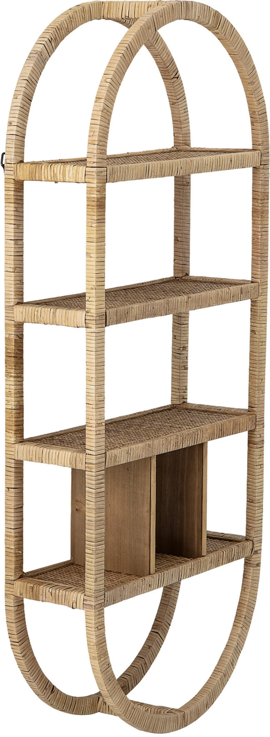 Løs dit behov for mere plads, mens du tilføjer stil til værelsesindretningen med denne ovale vægbeklædning i rattan. Genstande på hver hylde kan nemt ses og fås til at holde dit hjem mere organiseret. Brug i ethvert rum for at frigøre gulvplads og skabe et mere behageligt opholdsmiljø