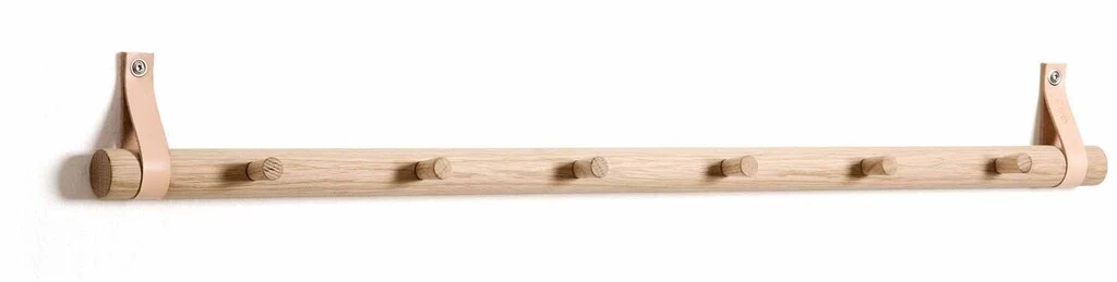 Rack er en klassisk knagerække i FSC-certificeret egetræ og læder, der fås i 2 størrelser så den passer til både små og store hjem, i køkkenet, på badeværelset osv.