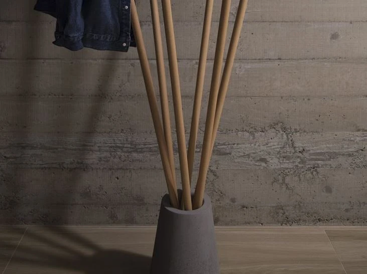 Spaghetti Coat Rack er en finurlig version af den traditionelle stumtjener. Den består af en tung base og seks robuste bøgestokke til at holde frakker, jakker, hatte og – med Macaroni Add-on – endda tasker. Stumtjeneren har en atmosfære af legende nostalgi og gennemtænkt design. Spaghetti Coat Racks base fås i to forskellige materialer; en naturlig beton eller en komposit terrazzo base lavet af marmor eller granit sat i beton. Designet er et samarbejde mellem de to designere Wei-Lun Tseng og Vytautas Gecas.