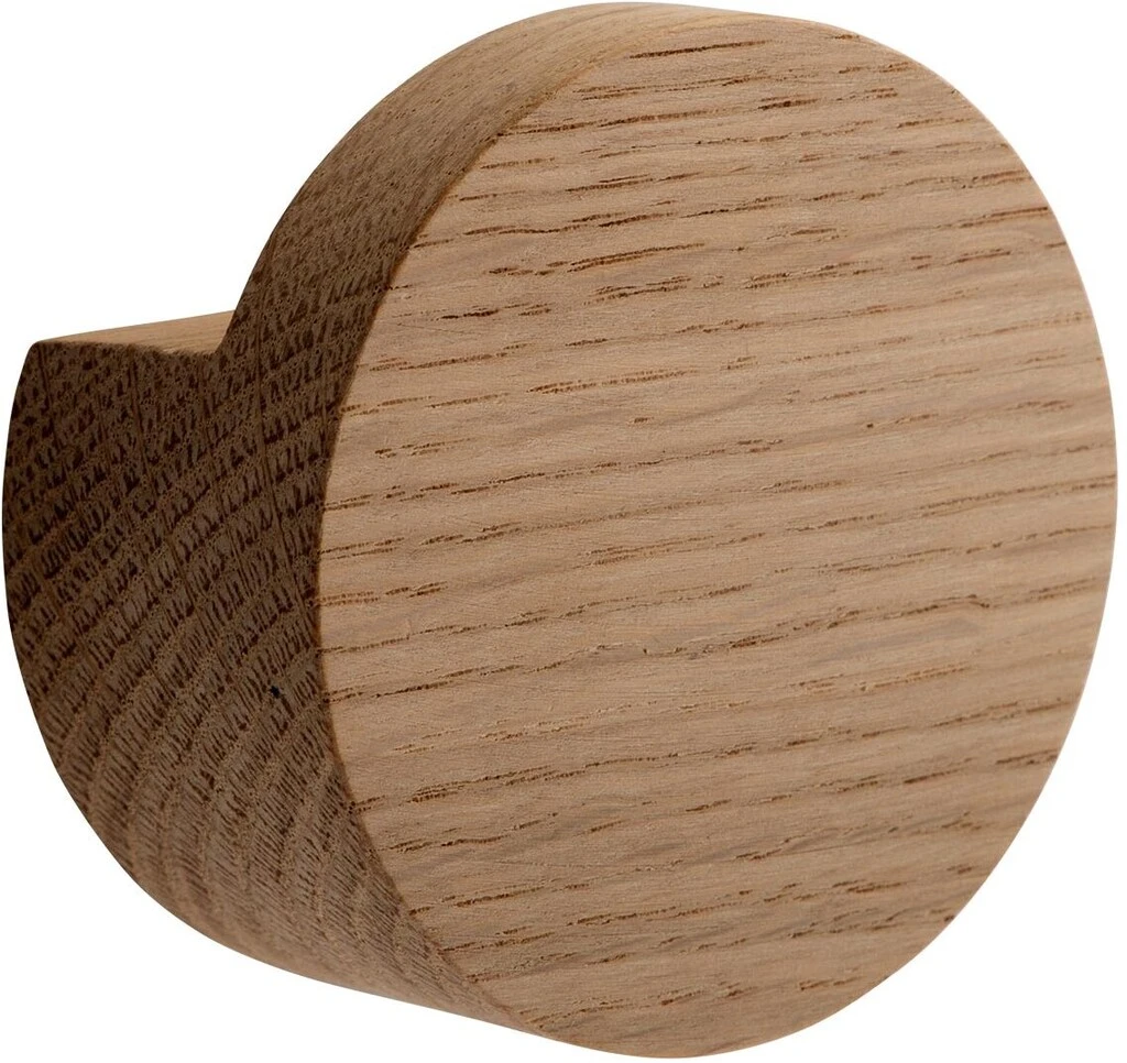 Wood Knot er knager lavet af europæisk eg i et helt enkelt design. Knagerne er lavet med et indhak, så viskestykker og jakker ikke glider for nemt af knagen, men bliver på deres plads. Wood Knot kan ligeledes bruges som dekorative greb på skabe og skuffer, da der medfølger flere opsætningsmuligheder. Leg med de forskellige størrelser af knagerne i entréen, køkkenet, børneværelset osv. eller pift dine køkkenlåger op med nye greb. Wood Knot fås i 3 størrelser i farverne Nature oak, Black oak og Smoked oak.