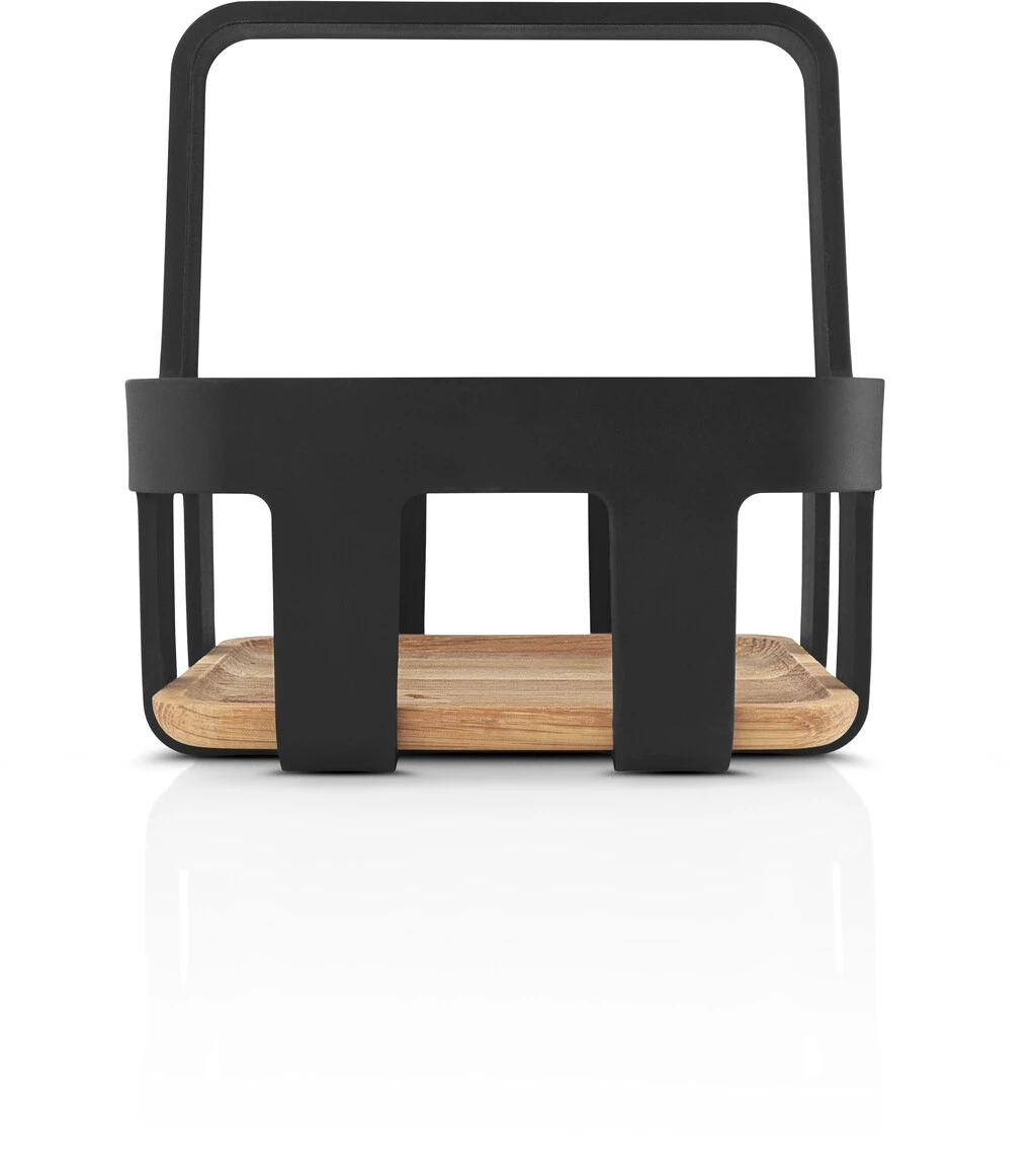 Saml olier og eddiker i en dekorativ platmenage i enkelt, tidløst design. Holderen har et praktisk bæregreb og er lige til at sætte på spisebordet eller tage med ud til grillaftener på terrassen, så olier, dressinger og krydderier er lige ved hånden – og nemt kan tages med indenfor igen.