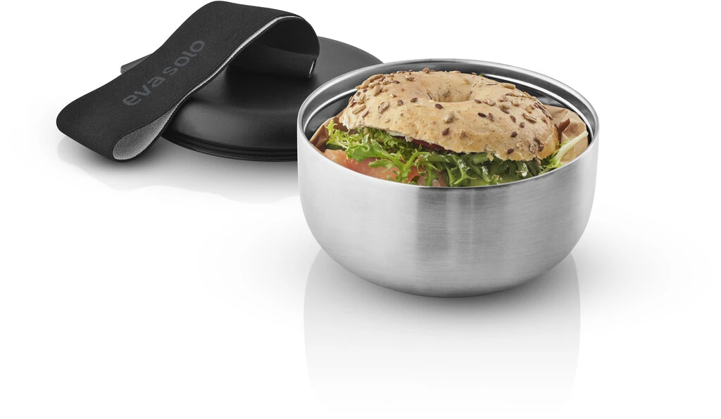 • Holder maden kold i længere tid, når du har taget den ud af køleskabet – termoskål og dobbeltvægget låg holder på kulden. Elegant elastik medfølger