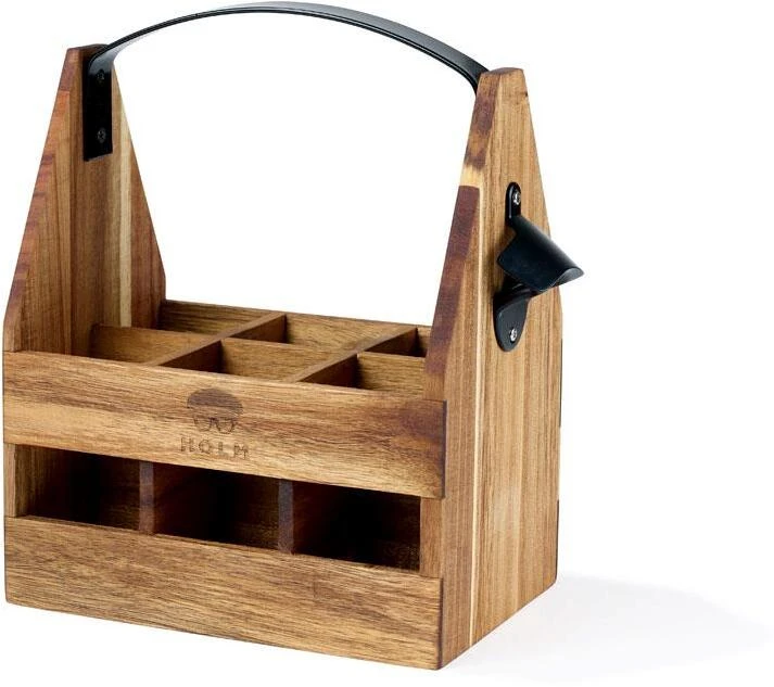 Ølkasse med plads til 6 øl eller sodavand i akacietræ.