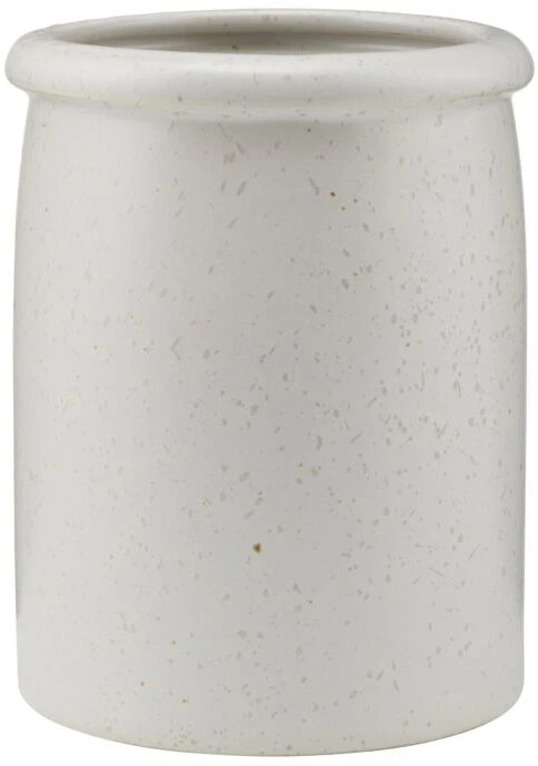 Organiser dine køkkenredskaber i stil med Pion-krukken fra House Doctor. Den er lavet af porcelæn og fuldendt med en hvid, plettet glasering, der giver den et fint men uformelt præg. I stedet for at opbevare dine paletknive, piskeris og træskeer i skuffen, kan du placere dem smukt på køkkenbordet og samtidigt have dem lige i nærheden, når du laver mad. Krukken vil være en fin og stilfuld tilføjelse til dit køkken og vil supplere enhver stil og farvesammensætning. Brugsspor og ridser kan ikke undgås på grund af den matte glasur og overflade. Dette er blot charmen ved Pion-designet og noget, som giver produktet mere karakter.