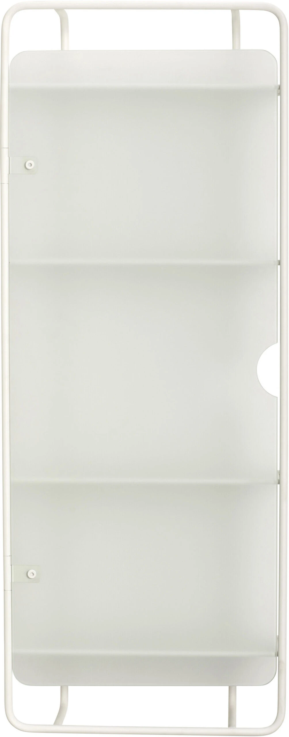Hylden er lavet af hvid metal og mat glas. Den har fire individuelle hylder. Hylden kan anvendes på badeværelset, kontoret, køkkenet og mange andre rum. Hylden skaber et minimalistisk og rent udtryk i ethvert rum den placeres i.