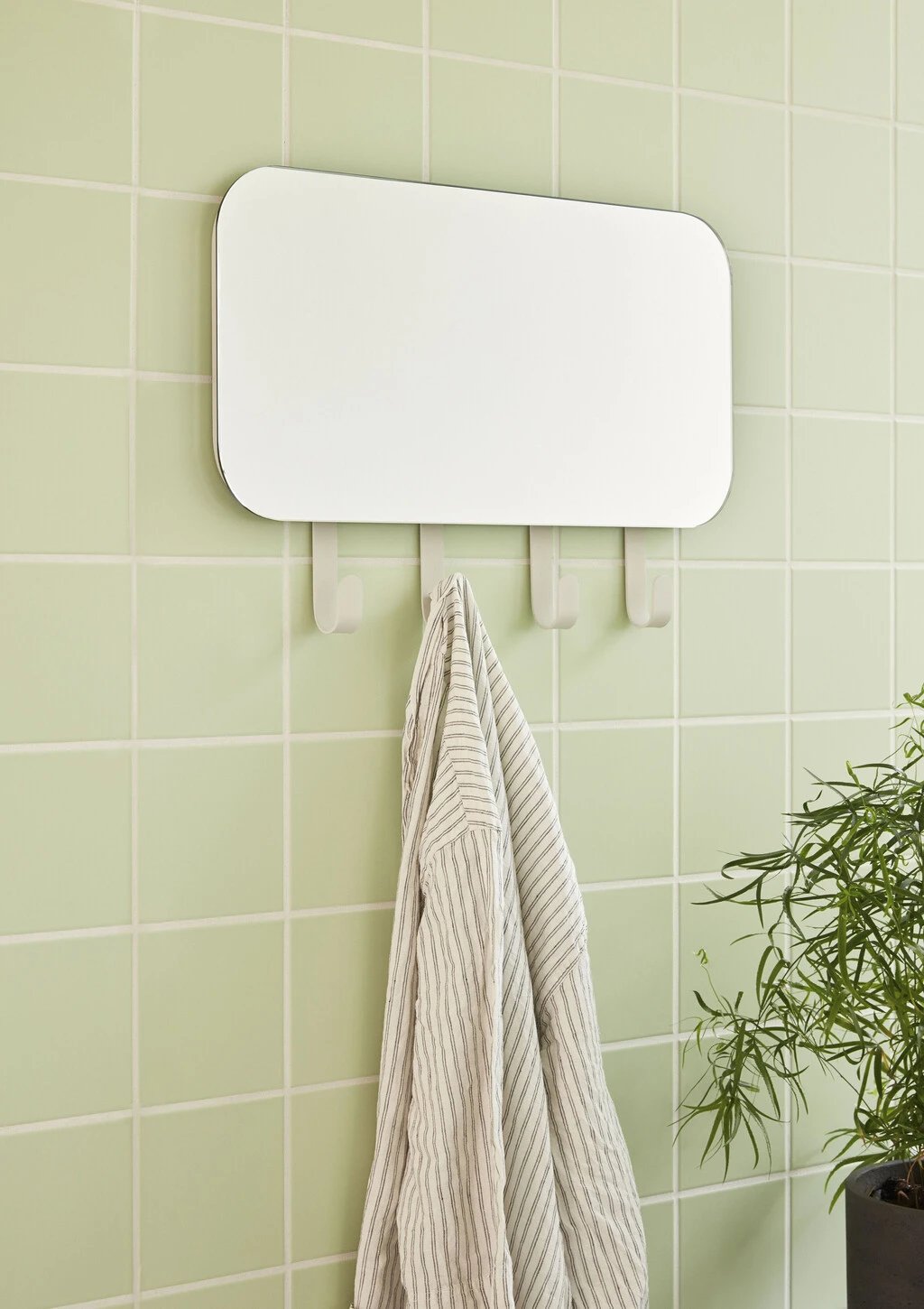 Knagerækken har fire kroge og et spejl. Den kan anvendes på badeværelset, i entreen og mange andre steder i dit hjem. Knagerækken er multifunktionel, og kan derfor bruges til at opfylde flere forskellige formål.