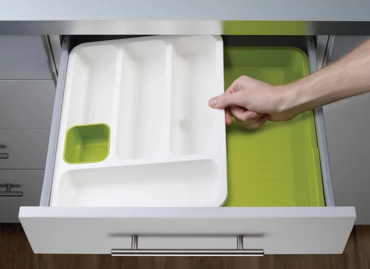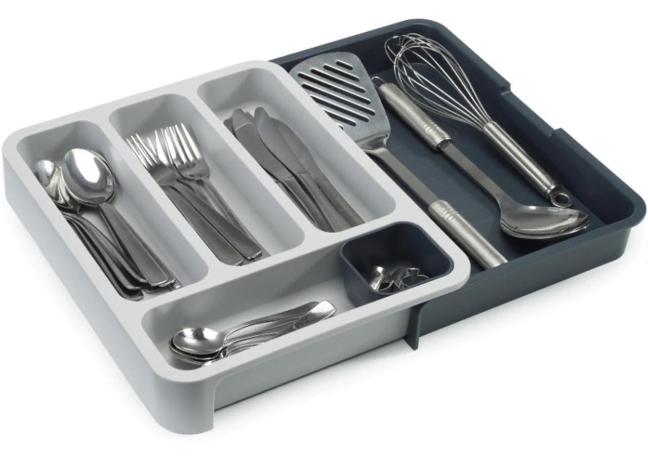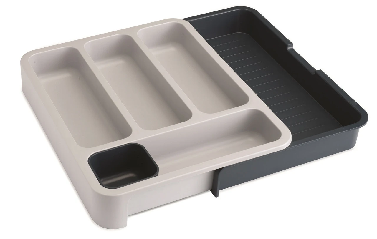 Justerbar bestikbeholder. Kan foldes ud til den størrelse der passer til skuffen. Kan justeres op til 48 cm. Vaskes i hånden.