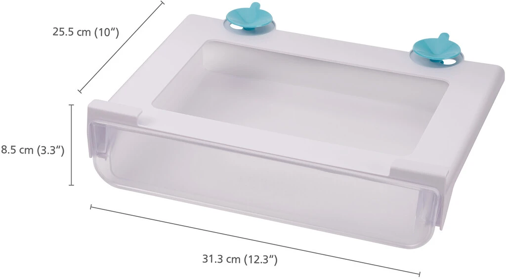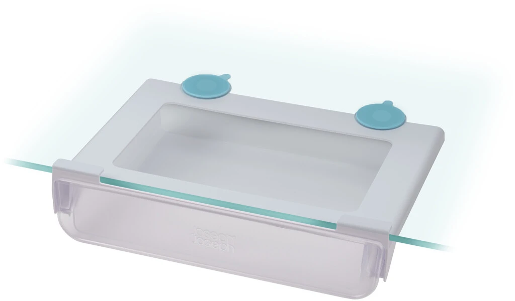 Innovativ opbevaringsløsning til dit køleskab. Denne skuffe hænger pænt fast på en eksisterende hylde for at rumme en række friske eller pakket madvarer.