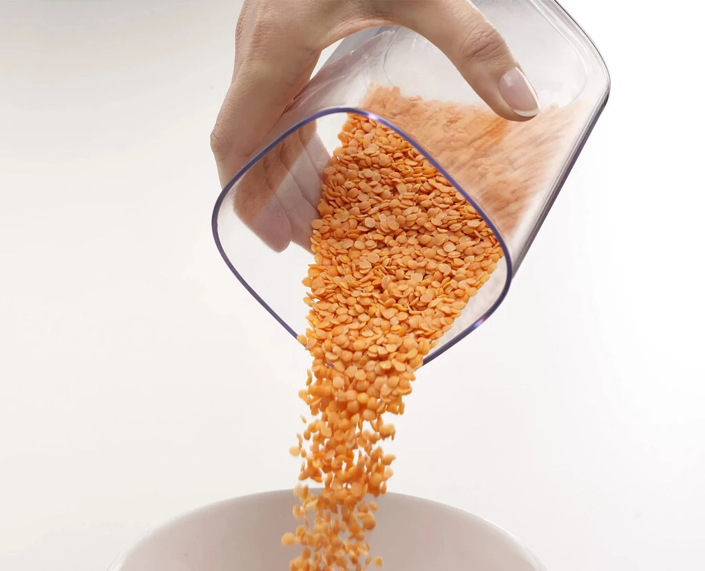 Beholdere har lufttætte silikoneforseglinger og hjørner, der er nemme at hælde