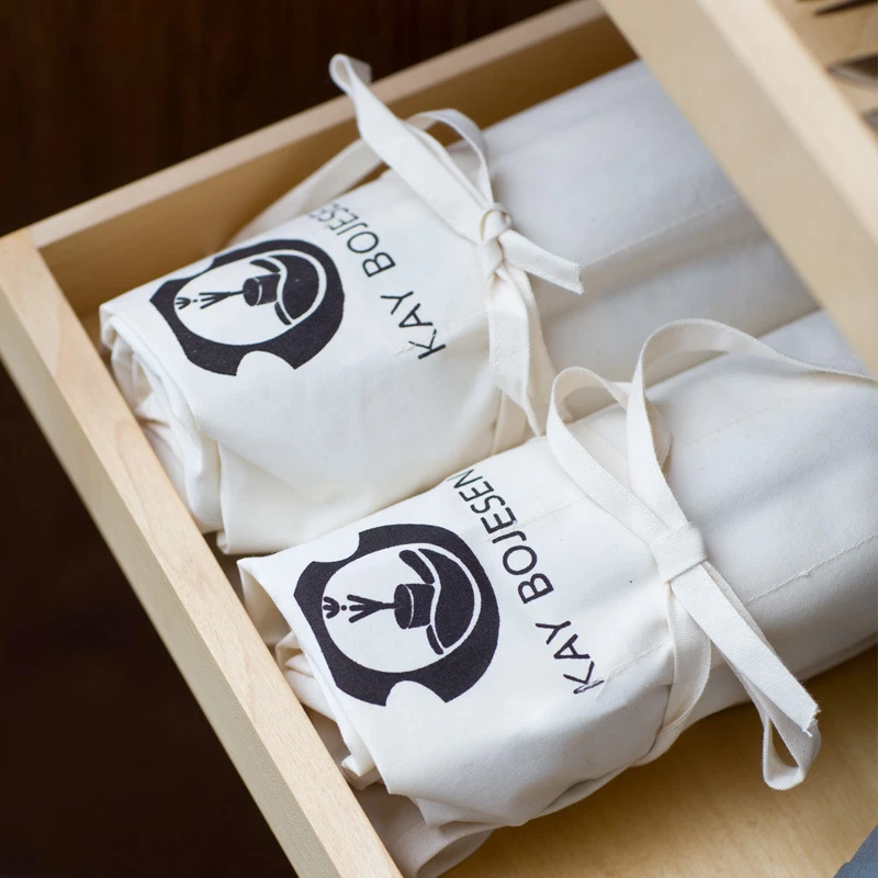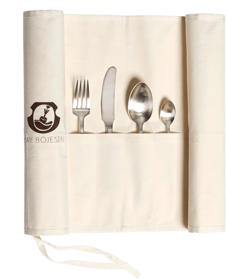 Råhvid bestikpose i 100% bomuld med 16 adskilte lommer til opbevaring af Kay Bojesen Grand Prix bestik.