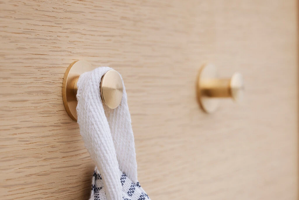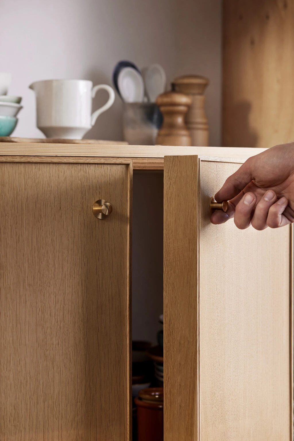 Konstruktionen af Knob er enkel. To stykker metal og en skrue til at holde det hele sammen. Brug den som vægkrog, dørhåndtag eller til køkkenskabe. Det er op til dig.