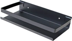 Denne hylde til badet eller fx køkkenet er fremstillet i rustfrit stål med mat sort finish. Der medfølger skruer og ravplugs til ophæng samt sorte hætter til at montere over skruerne.