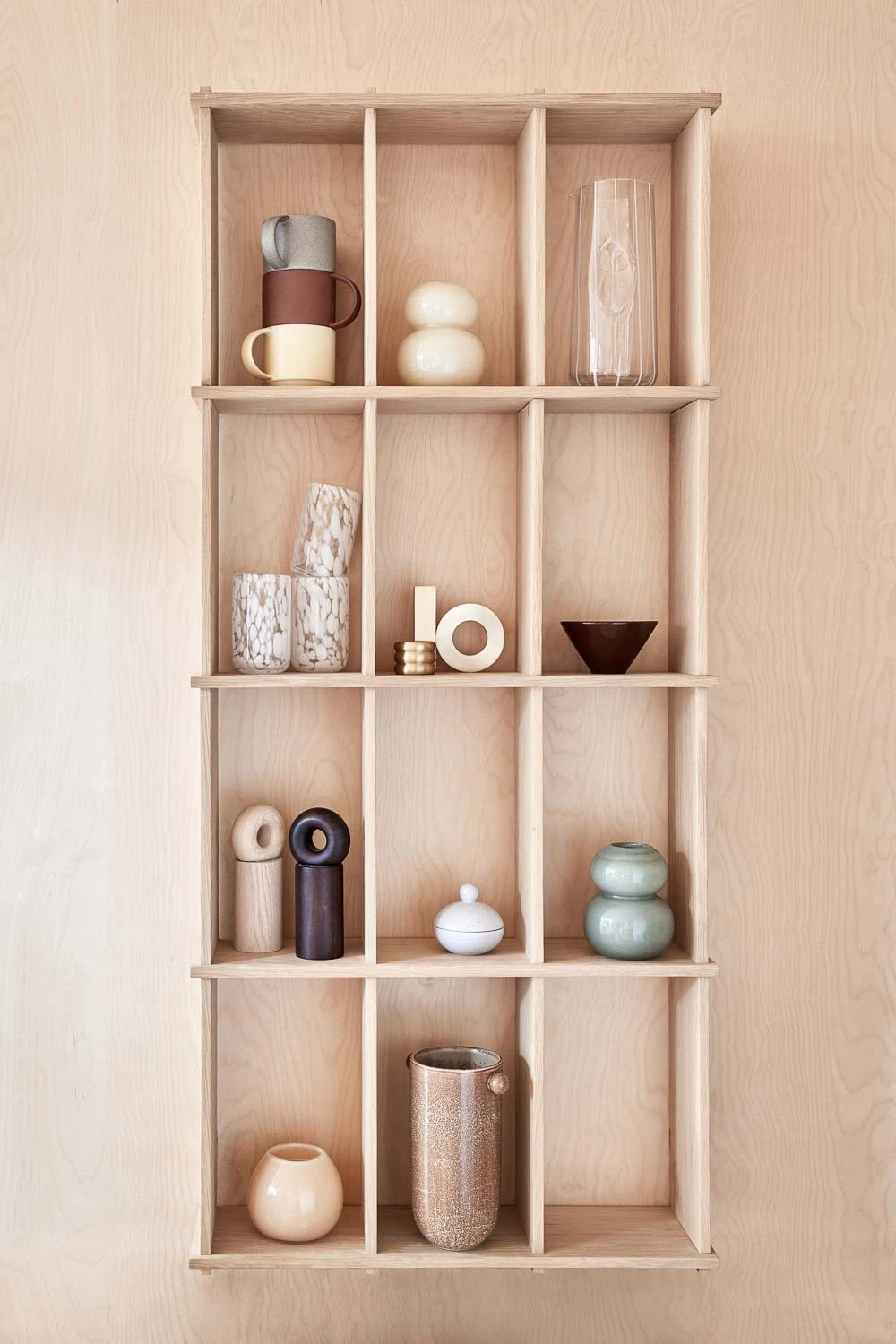 Placer Grid hylden i stuen for at udstille yndlingsgenstande og bringe minder til live ved at fremvise personlige genstande og billeder, eller brug den i køkkenet til din egen samling af kopper og glas. Brug Grid hylden som du vil – opad, sidelæns eller placer to hylder ved siden af hinanden. Der er uendelige muligheder for at få dette stykke til at passe til din personlige stil!