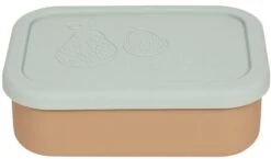 Vores Yummy madkasse er lavet i 100% silikone og har et sødt silikonelåg med et karakteristisk Yummy print og er opdelt i tre praktiske rum til opdeling af mad og snacks.