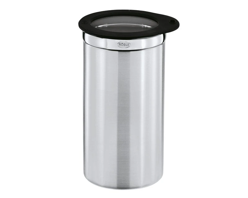 RÖSLE opbevaringsdåse af rustfrit stål er perfekt til opbevaring af mad, da smagen ikke påvirkes, samtidig med at den er nem at rengøre samt holdbar. Silikonekanten på glaslåget forsegler opbevaringsdåsen helt tæt, mens det flade låg gør det nemt at stable flere opbevaringsdåser.