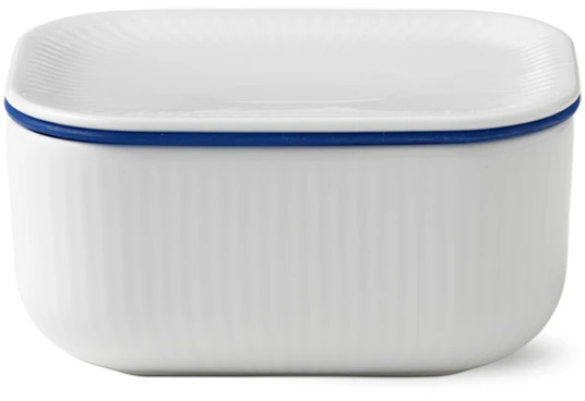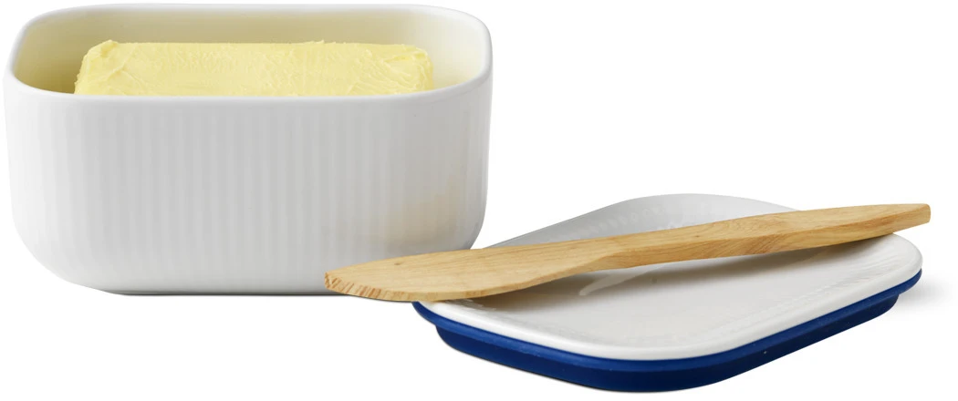 Hvid Riflet fortæller historien om kongeligt porcelæn og håndværk i en minimalistisk og nutidig stil. Resultatet? En moderne klassiker. Stellets rene hvidhed og enkle design gør det perfekt til at mikse og matche med andre riflede stel. Hvid Riflet er ideelt som hverdagens spisestel i moderne hjem, hvor man ikke går på kompromis med kvaliteten. Det er ren elegant enkelhed. Det grundlæggende design er identisk med Musselmalet Riflet, Blå Mega Riflet og Riflet Signatur, og lader sig fint blande med andre stel – men på egen hånd er det også elegant og iøjnefaldende. Smørkrukken har en størrelse, der passer til en pakke Lurpak eller lignende.