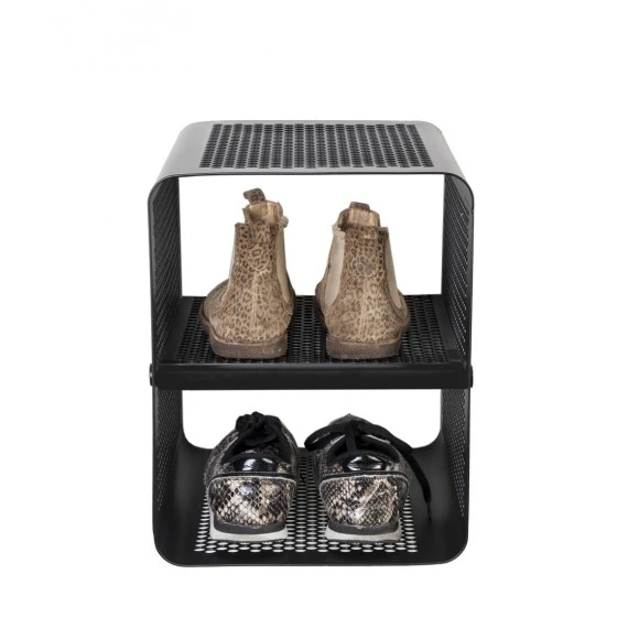 Skoreolen er lavet perforeret metal med et fint hulmønster. De runde former mønstret og formen på reolen står fin kontrast til metallet, så helheden bliver harmonisk. Skoreolen er perfekt til entreen, men kan sagtens bruges soveværelset, børneværekset eller garderoben. Siden på reolen kan bruges til nøgler, cykel hjelm, hat eller andet, der kan hænges op med s-kroge.