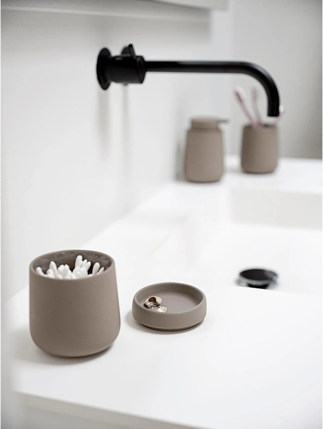 Den lille stentøjskrukke med låg er lige så fin, som den er anvendelig. Fyld den med alt det, der endnu ikke har fået en fast plads på badeværelset. Vatrondeller, hårpynt eller kontaktlinser måske? Låget har en fin fordybning, og det er derfor som skabt til at lægge smykkerne på, inden du lægger dig på puden.