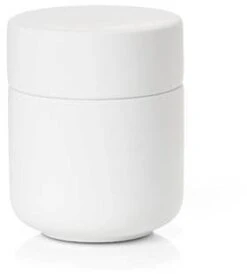 Keramikkrukken med låg har samme enkle, organiske formsprog som resten af den skønne badserie Ume. Den kan rumme dine hårspænder, makeup, vatpinde, vatrondeller eller hvad du ellers har behov for at ha’ ved hånden, men ikke nødvendigvis i syne, på badeværelset.