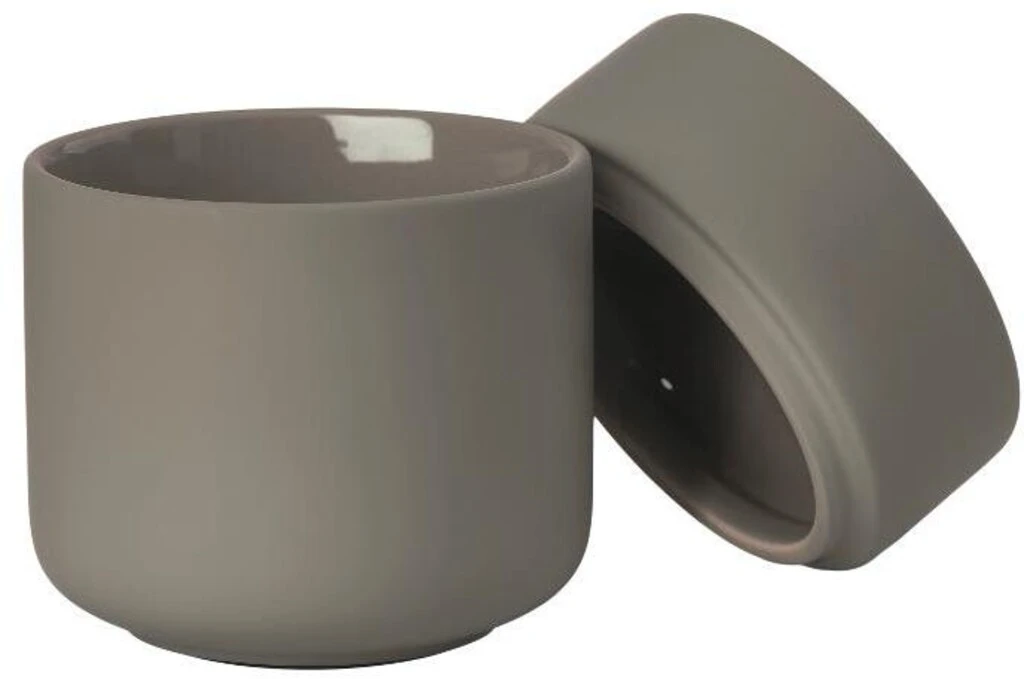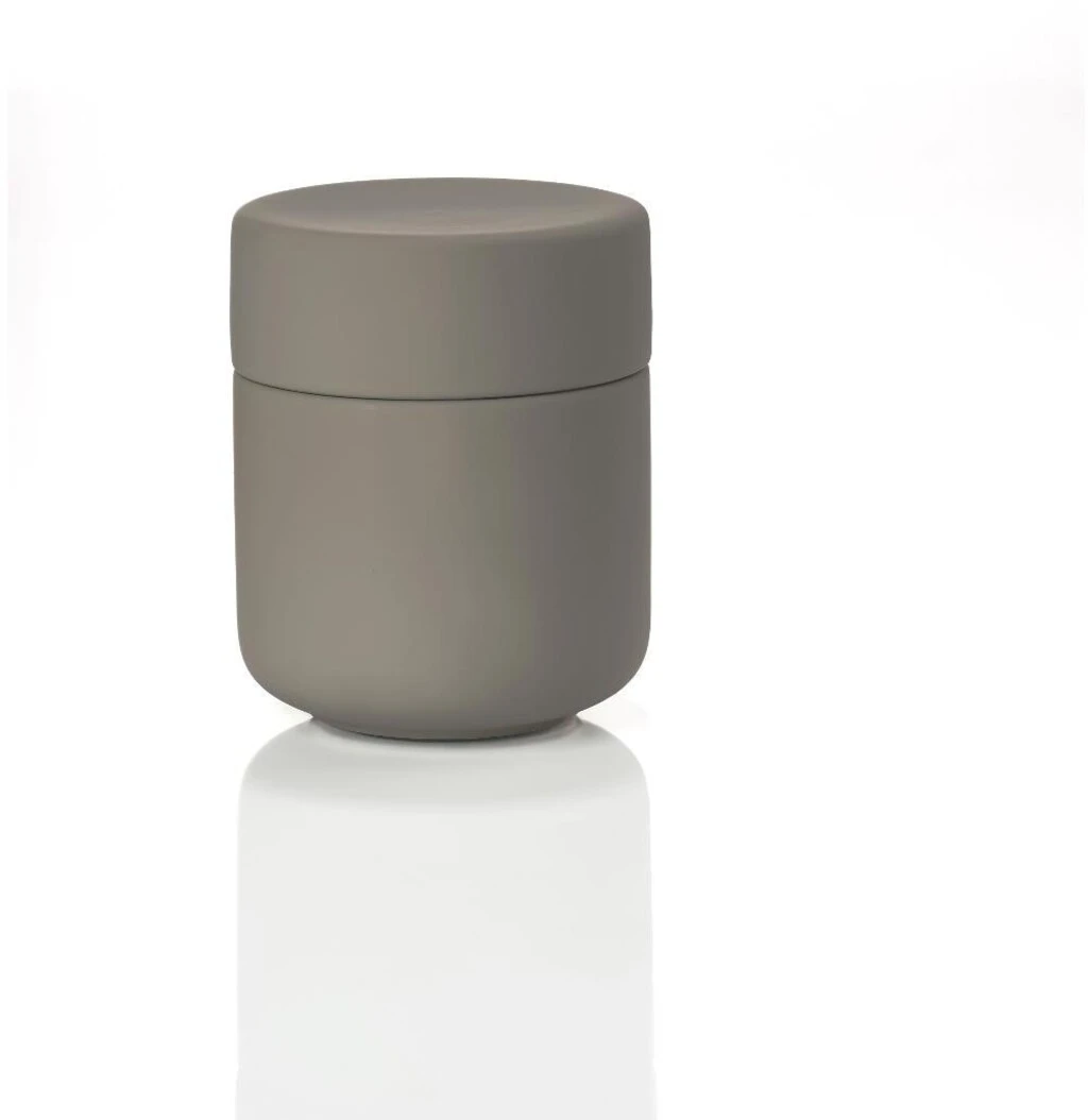 Keramikkrukken med låg har samme enkle, organiske formsprog som resten af den skønne badserie Ume. Den kan rumme dine hårspænder, makeup, vatpinde, vatrondeller eller hvad du ellers har behov for at ha’ ved hånden, men ikke nødvendigvis i syne, på badeværelset.