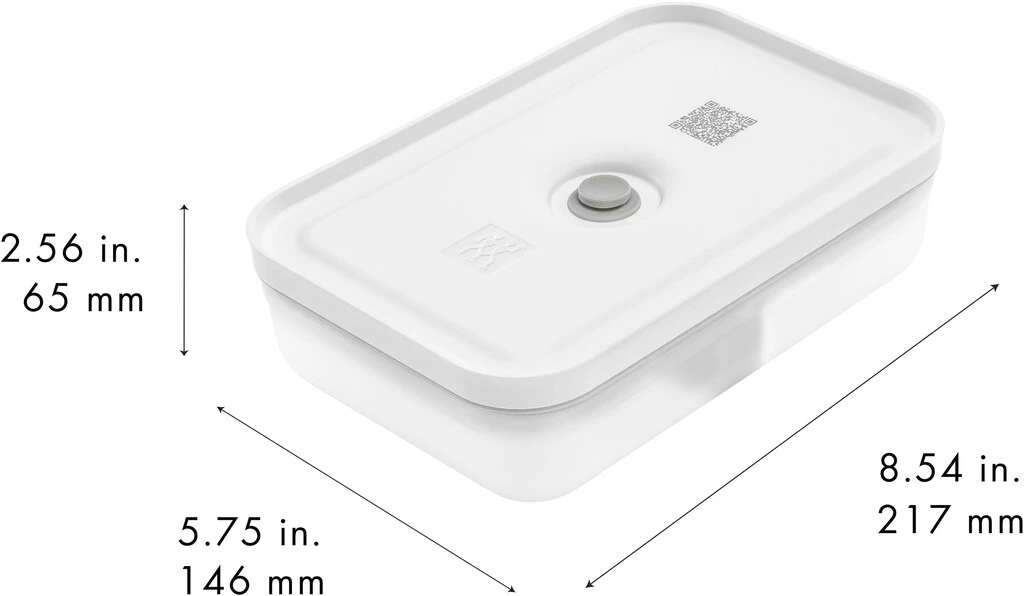 Med ZWILLING Fresh & Save vakuumserien kan du undgå madspild, forberede mad længere tid i forvejen og holde mad friskt i op til 5 gange længere sammenlignet med andre opbevaringsmetoder uden brug af vakuum. Placér maden i vakuumbeholderen, lad den køle helt af og placér så pumpen på låget. Det tager kun få sekunder og så kan vakuumbeholderen stilles i køleskabet eller fryseren, hvor maden holder sig frisk og man undgår frostskader. Vakuumbeholderen i BPA fri plast kan gå i mikroovnen og opvaskemaskinen samt køleskabet og fryseren. Vakuumbeholderne bør ikke fyldes helt, da vakuum ellers ikke vil være muligt at opnå. Disse produkter kan kombineres med produkterne fra samlemærkekampagnerne. Download Zwilling Culinary World app og scan QR koden på lågene og poserne. App’en minder dig herefter om hvornår maden skal bruges, og kommer med forslag til opskrifter, som den kan bruges i.
